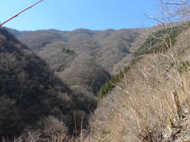 薄ら寒い植林帯を抜け急斜面の崩壊地に出ると気温は16度にもなっている。それもほんのわずか、最初の沢に入ると氷の世界であり、次の沢は陽射しもまったく差し込まないので、いっそう寒く感じる。それでも雪はほとんどなく、このようなことは始めてである。
