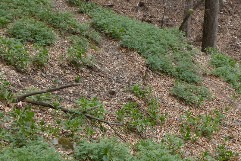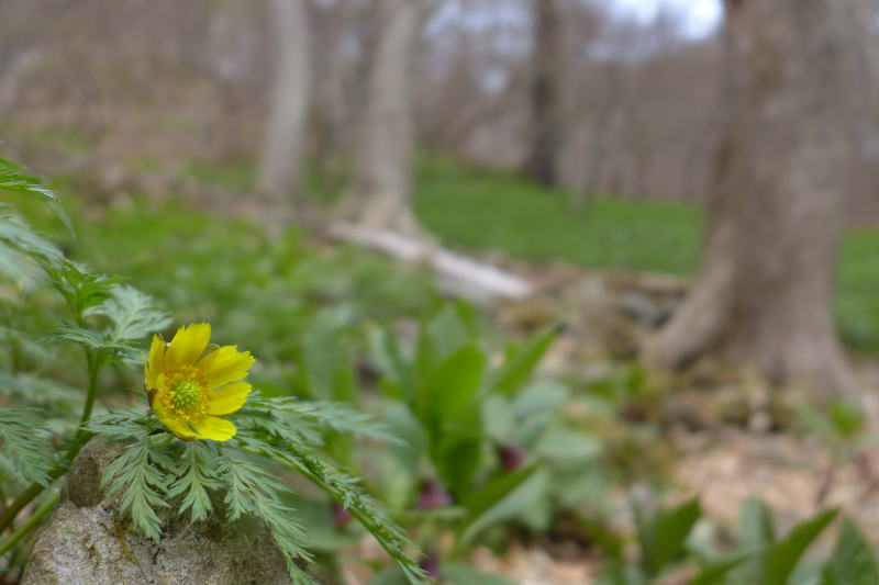 今年、フクジュソウ群落はかつてない荒廃を見せた。斜面が柔らかく滑りやすいからちょっと足を乗せただけでも土壌が持っていかれ押し下げられてしまう(画像:上)。道が縦横に走るようになり、裸地が増えてきた。ただそれだけのことだ。まだまだ踏み固める余地は一杯ある。