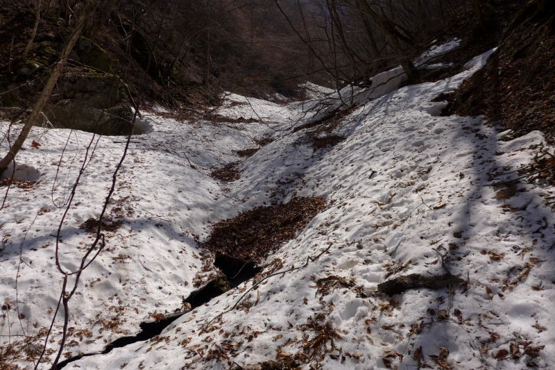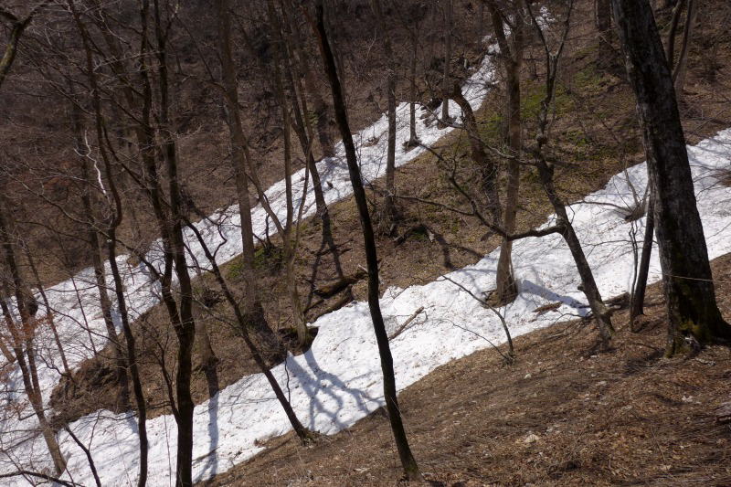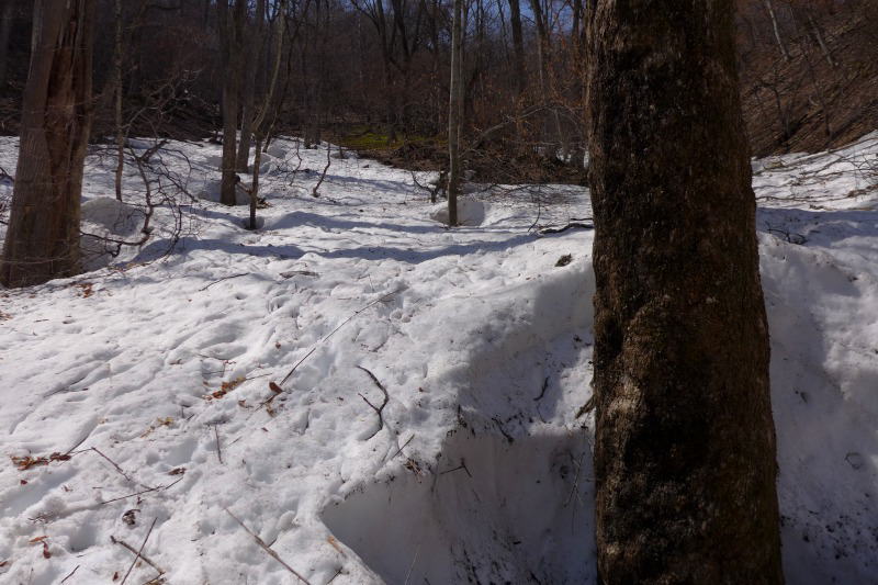 沢から上がるときの尾根を乗越したところがまだこんな状態。