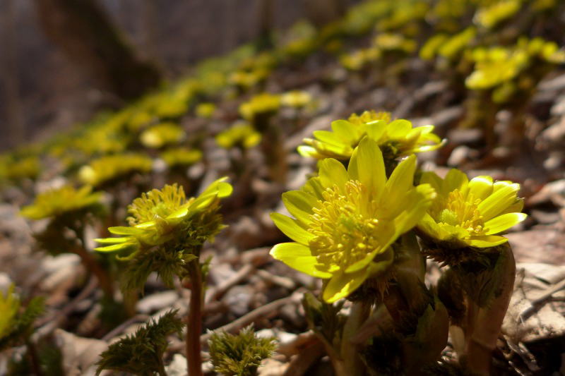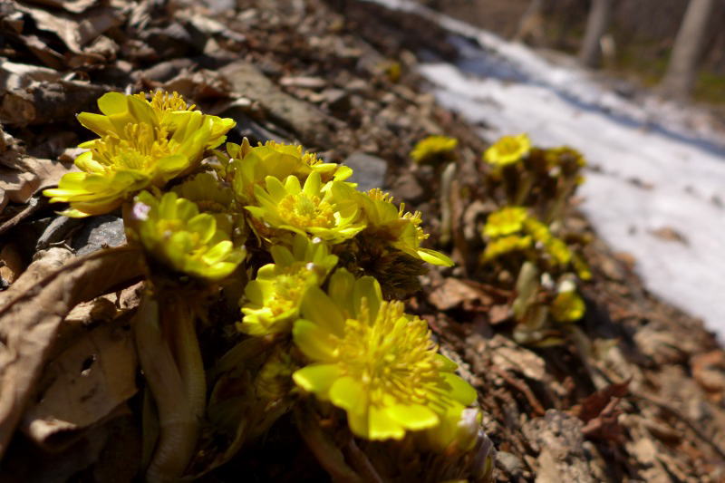 深い雪がようやく融けて花開いたばかり。