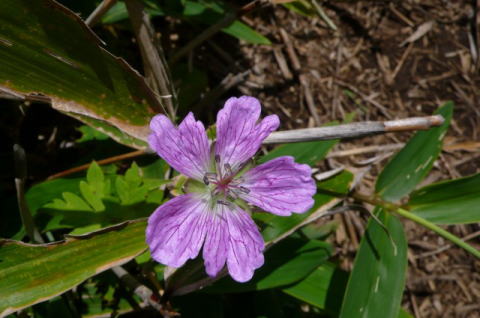 黒岳の分岐から大菩薩嶺方向に向け北上する。針葉樹に覆われた稜線は日差しが遮られ、風が通り抜けていくことから心地よい。しかし、その心地よさも川胡桃沢ノ頭までで、北面のうっそうとした林の中を下り、賽ノ河原に出る。ここは西側に水場があるようだ。賽ノ河原から笹が主体の斜面を登る。その中にコウリンカやカイフウロがわずかに咲く。