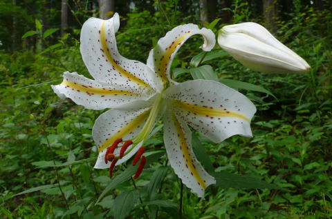 大峠へから真木温泉方向に向けて真木小金沢林道を走ると、林道脇に数株のヤマユリがあった。今から30数年も前に、とある仕事で千葉県の町の林に入った。その林の中にすくっと茎を伸ばしたヤマユリがあったので、1本いただいて当時お世話になっていた事務所の窓口職員に渡して喜ばれたことがあった。