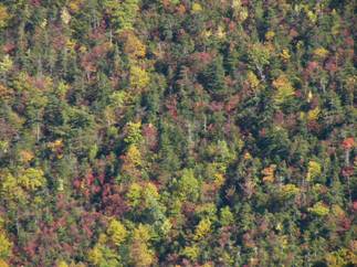デジカメの望遠で楽古岳の頂上を切り取ってみると山腹から山頂まで紅葉が盛りの様子が分かる。端正な山頂を持つ楽古岳,ミズナラの木が尾根には多く熊ちゃんが好きそうな環境にあるとのことだが,是非登ってみたい山の一つとなった。