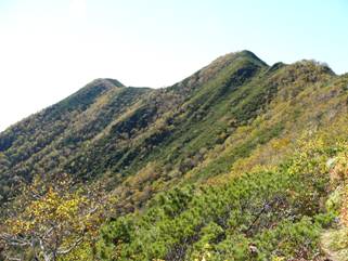 チチッ,チチッという鳴き声が何度か聞こえた。まさかこの標高でナキウサギはいないだろう,鳥の声かなと思っていたが,あとでガイドブックを見たところ「運が良ければ岩れき地ではナキウサギの声も聞かれることだろう。おまけに稜線の南側や東側では熊の掘り返しなども見られる。」と書いてあるから,あれはナキウサギの声だったのだ。ときおり鹿の鳴く声が聞こえ,一度だけ谷筋から獣(熊ちゃん?)の鳴き声も聞こえてきたが,確かに野性味のある山である。