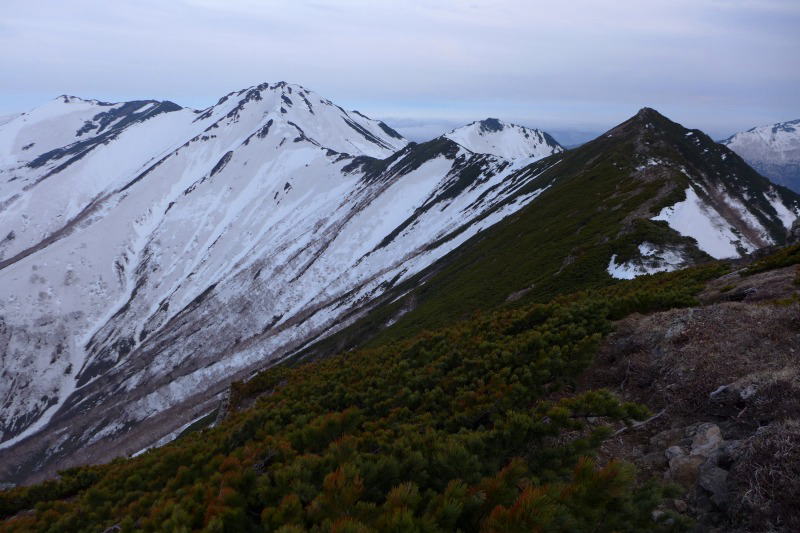 戸蔦別岳と幌尻岳 右の斜面は北戸蔦別岳からのもの