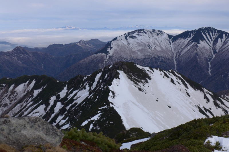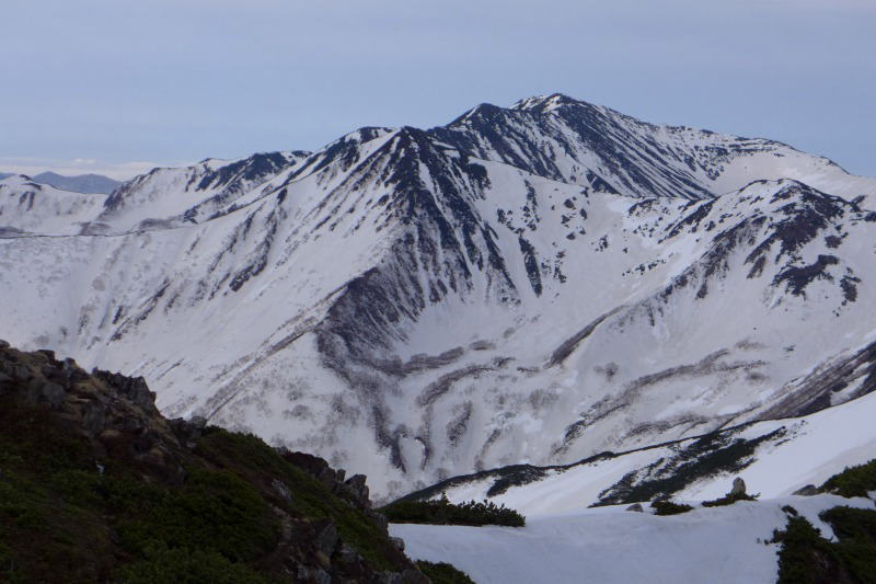 戸蔦別カールを従えた戸蔦別岳 奥に幌尻岳