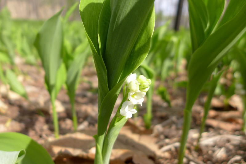 スズランは、北海道を代表する野草なはずなのに、もうおいそれと簡単に見ることができなくなった野の花になってしまった。スズラン公園という名の場所のスズランが採られ尽されてしまい、一般家庭にスズランを戻してほしいとキャンペーンを行っているところもあるそうな。昔はどこででも見られたスズランではあっても、アマドコロやナルコユリが咲いているようなところで目を凝らすと見ることができる。今回は、花の時期には少し早かった。