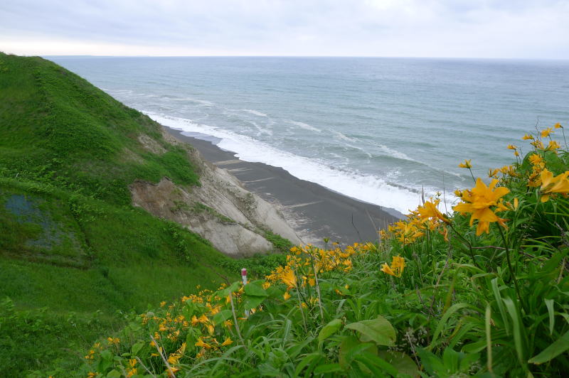 エゾカンゾウの群れ 宗谷の海岸