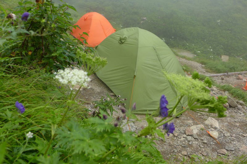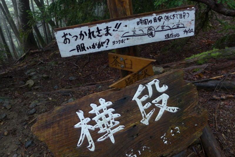 明け方、まだ雨が降っているが、人の足音がする。午前3時にもなっていないが、(トイレが)我慢ならなかったようだ。もうしばらくすると、ツアー登山者や他の登山者が次々と出発して稜線に向かって上がっていく。もさもさしていてもまだ5時前、風がとても強い。スケジュールどおりに計画をこなさなければならないのは分かるとしても、稜線から100mも下がった茶臼小屋でこの風の強さである。気温は高いので、風さえ凌ぐことができれば取り立てて危険な場所はないのだろう。特に光岳までの間で吹き上げる風に直接晒されるのは稜線から茶臼岳と下りのザレ場ぐらいだろうし。