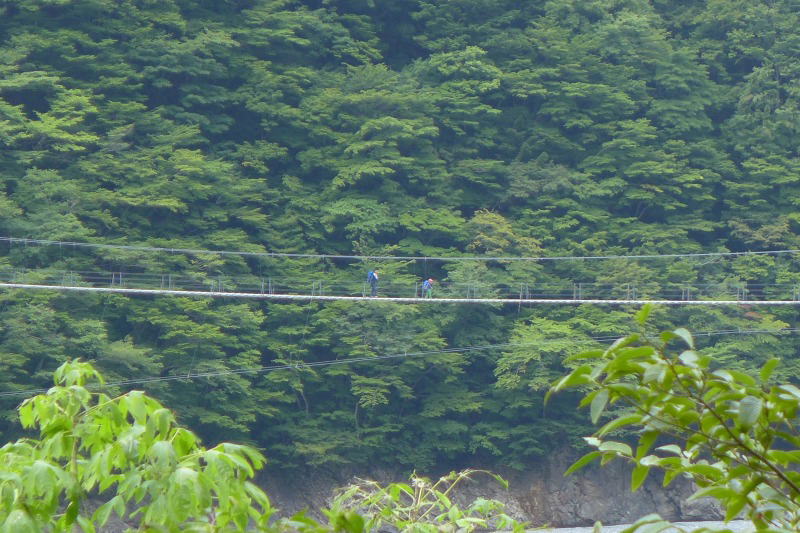 畑雉大吊橋を渡るちびっこ登山家とおじいちゃん