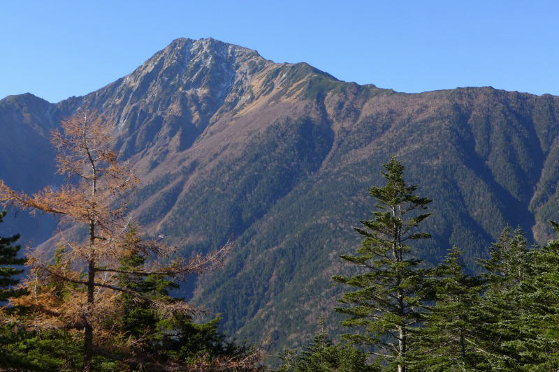 樹林のすき間から北岳