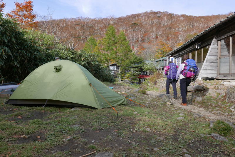 そんな那須岳を今回はテントを背負って登ることにした。三斗小屋温泉煙草屋が小屋の前のスペースに、1日4張り限定でテントを張らせてくれるということをつい最近知ったからだった。テント泊は1泊2,000円で、露天風呂・水・トイレの使用料が含まれている。例えば北岳の北岳山荘はテント場代が800円で水は無料、トイレはチップ制で1回500円が標準であり、奥多摩の三条の湯はホームページの記載に関わらずテント場代と入浴料金を合わせ900円でトイレはチップ制となっていて100円程度を投入する人が多いようだ。そんなわけで三斗小屋温泉煙草屋のテント場使用料は無茶高くもなく安くもなくというところだろうか。