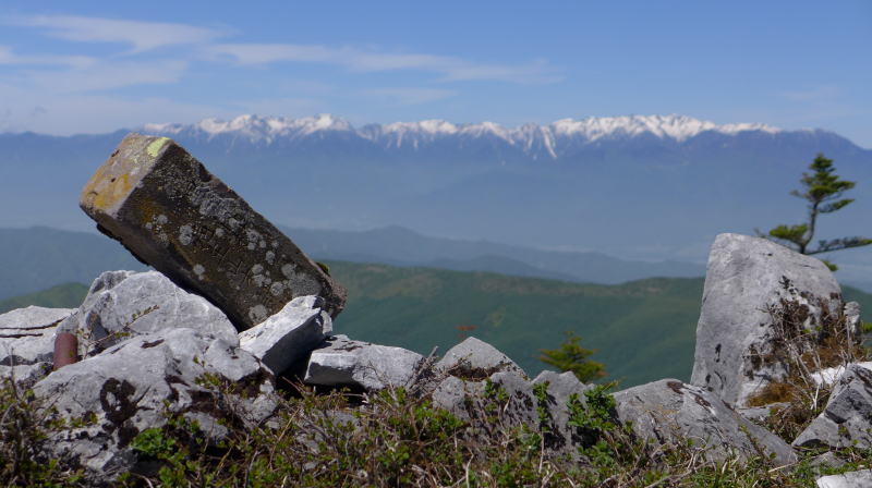 早い梅雨に入ったが、いい天気が予想されたので車を走らせた。途中で仮眠し、夜明けとともに静寂な登山道に取り付く。初めての山だったので地図とコンパス、それにGPSを用意したのだが、コンパスは壊れていて使い物にならなかった。登山道は赤・黄・青・ピンクのテープが要所要所に付けられていて迷いようがない。