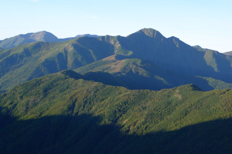 仙丈ヶ岳から仙塩尾根 (横川岳稜線と東斜面は大規模な倒木が発生した模様)