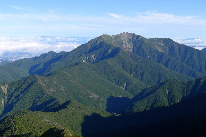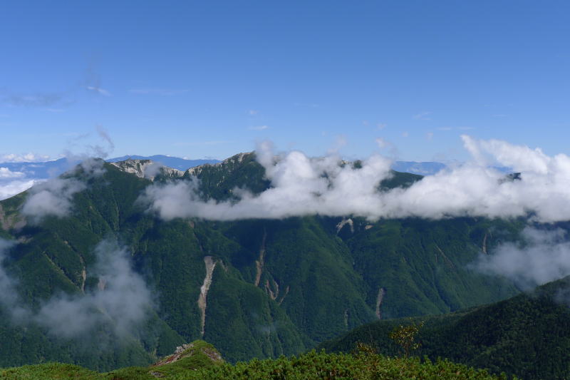 三峰岳から仙塩尾根の先の塩見岳を見る