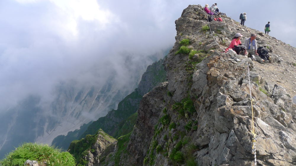 三国境には、数名が休憩していた。単独の同世代男性と話をするが、「朝日小屋まで行くのはやめようかな。」と言う。もう時刻は午後2時で、どこから来たのかと聞くと、なんと五竜山荘からとのこと。ちょとちょと、五竜山荘からと言えば不帰キレットをやって三国境まででもコースタイムは約11時間だ。三国境から朝日小屋まではさらに約6時間ある。結局は白馬大池に向かって行ったが、世には鉄人がいるものだと感心しきりだった。