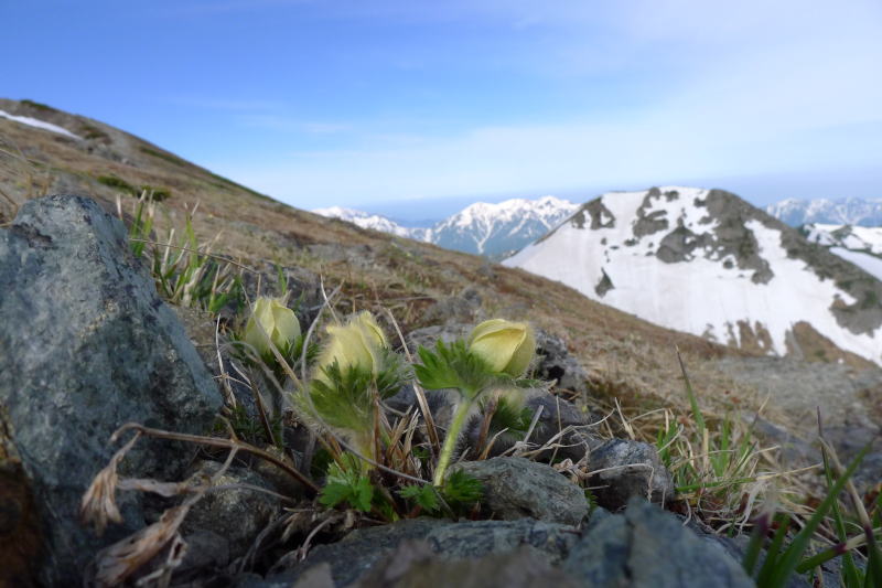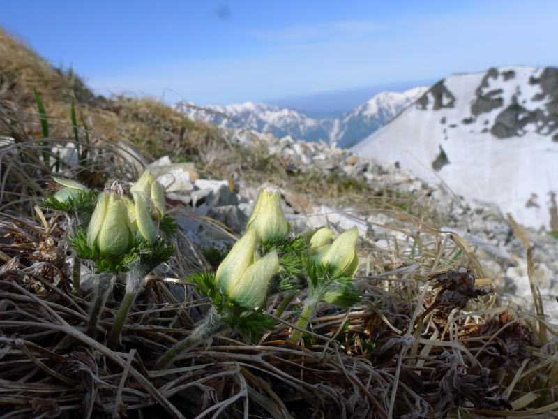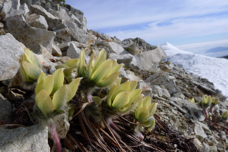 白馬岳は稜線が南北に通っていますから、ツクモグサは東斜面に咲きたいのでしょうが、