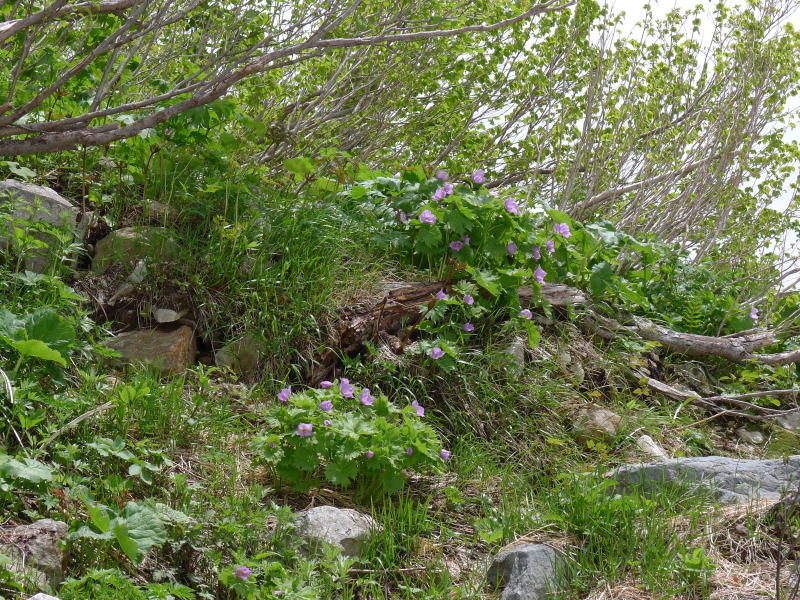 小屋の周辺では、オオサクラソウやシラネアオイが満開です。