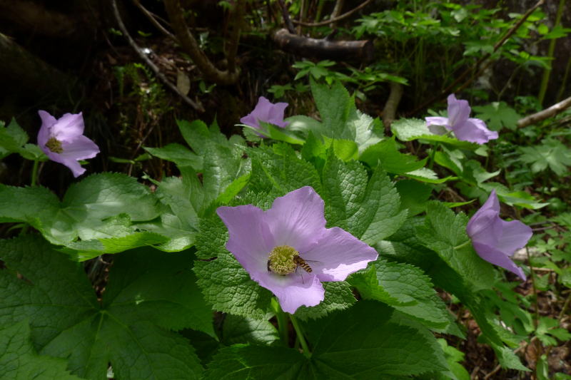 流れに沿った林床はまるでお花の楽園・・・、シラネアオイはとんでもないほどです。