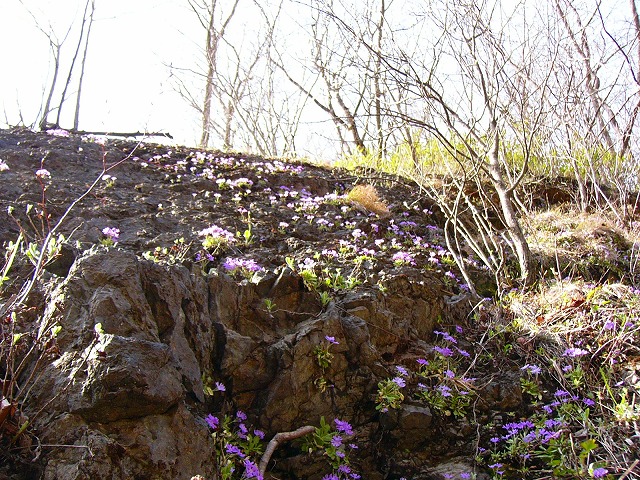 林道の奥の岩場にソラチコザクラが咲く。画像が見当たらなくなったのが悔やまれる。
