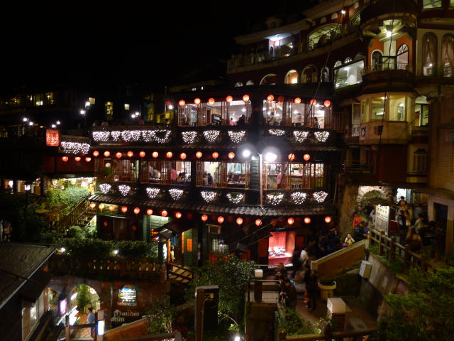 2日目は午前中、忠烈祠、中正記念堂と龍山寺の観光であったが、龍山寺での老若男女がお参りする姿を見て心を打たれた。次は台北101展望台へ行くが、その後はお楽しみの九fen観光である。九fenへは、お昼を鼎泰豊の小籠包を食べるために列に並んだこともあって午後遅くなったこともあって、現地に着いたころには夜の帳が下りようとするころであった。そのため基隆の港の夜景が一望でき、はるか海上には漁火も見え、そして九fenの街そのものの雰囲気も最高であった。大混雑の九fenで店店を眺めながら歩く。エキゾチックとはこのことを言うのだろうか。夕食は海悦楼での郷土料理という触れ込みであったがビールもうまく、ツアー参加者の紹興酒のご相伴にも預かり、すっかりいい気分となった。