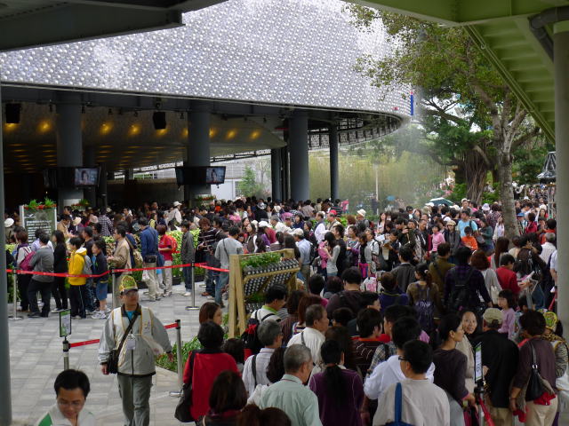 楽しみにしていた花博は、ツアーの最終日の3日目であった。ここも添乗員さんの、ツアーの参加者が好きだというパビリオンを一つはゆっくり見させてあげたいという計らいで、個人用入場券(安い団体用だとまとまって専用のゲートから入らなければならないので、時間がかかる)が配られ、集合場所と時間を決め、めいめい開門と同時に入ったのに、お目当ての「洋ラン」の展示場は2時間待ちの長い列となっていた。そのほかのパビリオンも同様の状況であったので、パビリオン巡りはあっさりあきらめ、花博会場を散策することとした。会場にはおびただしい花が飾られていたが、散策中に花博の目玉の「花」と言えばこれだといったものはなく、拍子抜けであった。しかし、花博に多くの人が訪れ台湾の人的交流が増進し経済活性化の一助になればご同慶の至りである。