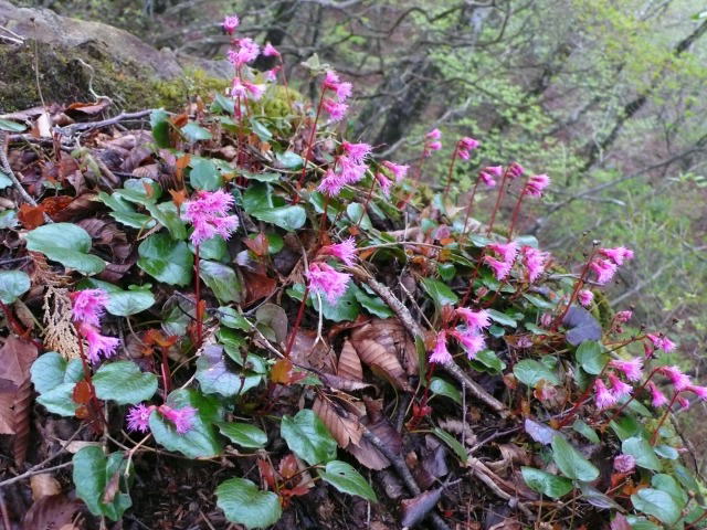 静寂の東稜に咲くヒメイワカガミ 滝子山