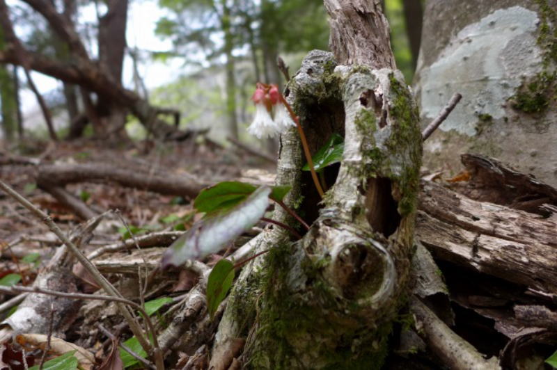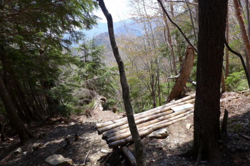 今年は季節が早く進んでいるようだ。昨年見た花は既に終期を迎えていて、ミツバツツジも標高1600m以下ではすでに見ごろを過ぎている。大無間山や上河内岳のビューポイントになっているベンチ(水呑場の手間への倒木のベンチとは異なる)で腰を下ろすと、頭がくらくらするほどの眠気に襲われた。夏山用の薄いシャツ2枚で寝ていたので寒さで目を覚ましたが、時計を見ると1時間も寝ていたのだった。