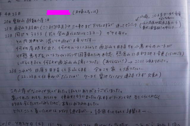 酉谷山避難小屋ノート