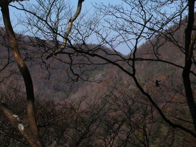 七跳山の分岐から七跳尾根を下る。倒木が多いがどれも処理されて登山道から除かれている。登山道には落ち葉が敷き詰められていて、心地よい歩きが楽しめる。尾根から550mを一気に下ると小川谷林道のゲートに出る。オフロードバイクのライダーが会釈をし、軽やかな排気音を立てて通り過ぎて行く。鍾乳洞のバス停に着くと、まだバスの時間に1時間もある。御休処「見晴亭」で蕎麦を食べ、誘われて火鉢で温まりながら「手作り ねんねんぼう草もち」を食べながら、四方山話に花を咲かせているうちにバスの時間となった。