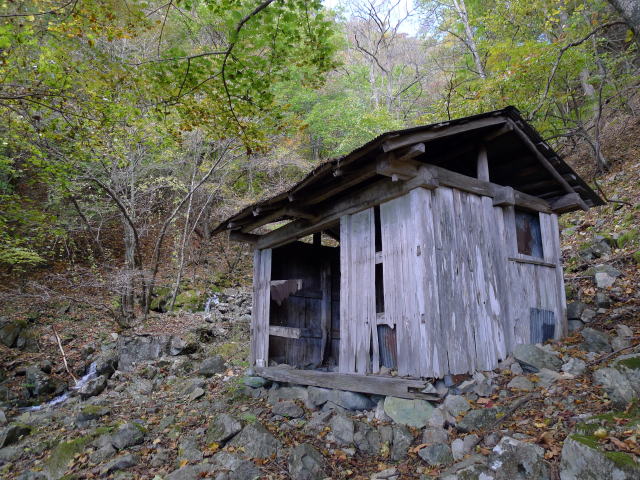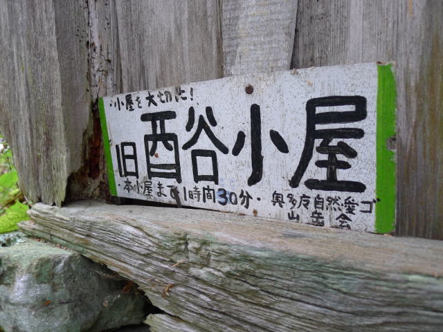 三又からはつづら折りとなった道で徐々に高度を上げていく。どこまで登っても登山道は丁寧に整備されている。自然林、渓流、フットパスの様な快適な登山道。もし雨の中でなければ素晴らしい山歩きを実感できる場所である。登山道が渓流に沿うようになると、旧酉谷小屋に出会う。中はとても使えた代物ではないが、往時をしのばせるものがある。