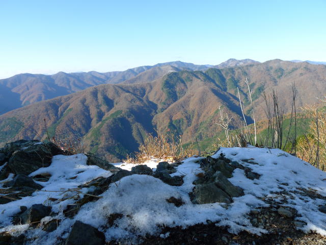 いったん熊鈴を鳴らしてはみたが、せっかくの歩きがうるさくなるのでザックにしまう。サクサクとカサカサという感触を楽しみながら長沢背稜を進む。七跳尾根を過ぎてからハンギョウ尾根を下りようとしていたのだが、下降点を見つけられないうちに大ドッケへの分岐に着いてしまったので、一杯水避難小屋に向かう。