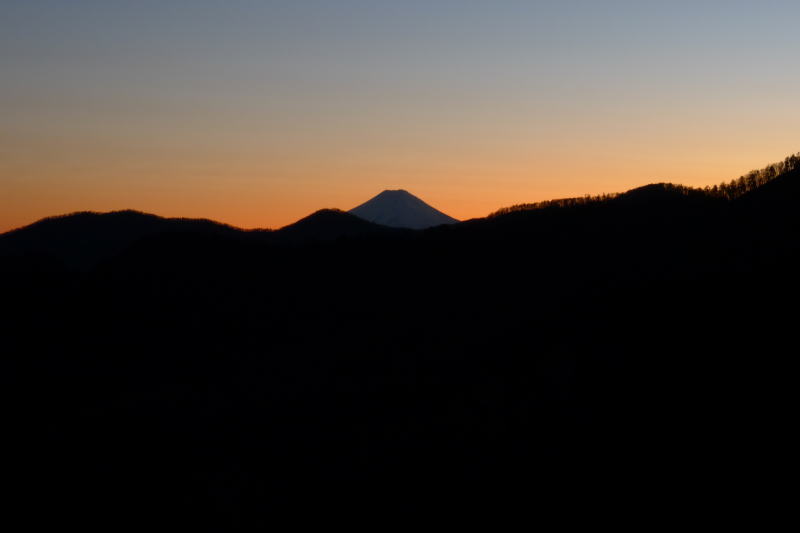 ゆっくり本を読むつもりが、シュラフに入れた湯たんぽの心地よさですっかり寝入ってしまいました。目を覚ましてみるとまだ午後10時です。それでも7時間歩いた疲れで再びすぐ寝付いたのですが、次に目を覚ましたら小屋の窓から富士山が見えるほどの時刻になっていました。今日はもと来た道を戻るのですが、いくつものピークを上り下りして行かなければならなりません。そういうことで早立ちをしたいのですが、あまりにもいい天気にのんびりムードが勝ってしまいます。