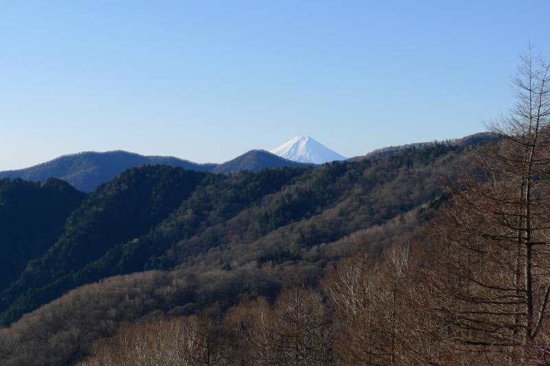 さて、今日も無風快晴です。朝一番の気温はマイナス1度でしたが、陽が高くなってきて稜線を歩いても暖かです。しかし、それは長沢背稜を歩いているときだけで、長沢背稜から離れると登山口までの長い樹林帯に入らなければならないので、多少憂鬱です。その上約1、300mほども下るのですから、なおさらです。