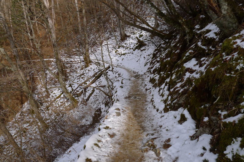 七ッ石小屋を経由したのにはもう一つ理由があって、小屋そばの水場で水を補給することでした。奥多摩小屋でもとることができるのですが、凍結などの万一のことを考えて2リットル補充します。