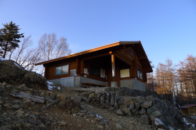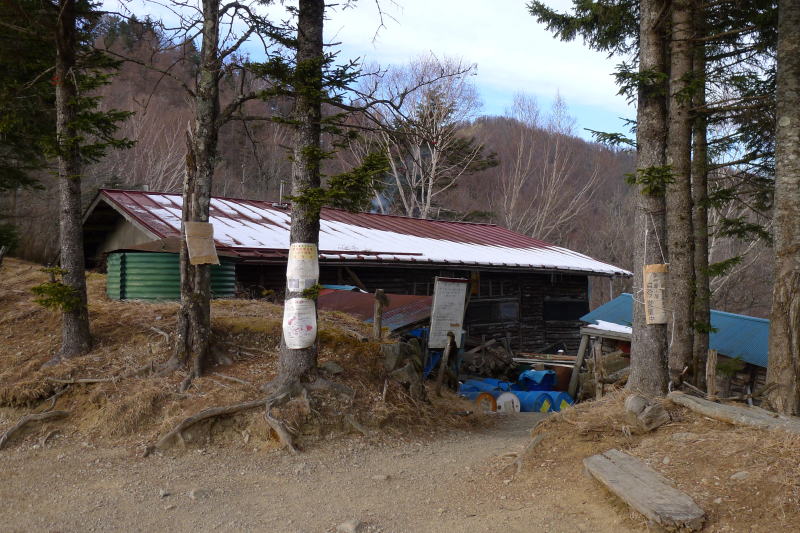 今回は七ッ石小屋を経由するため、しっかりした道を外れ尾根に付けられた急登に入ります。これまで幾度となく七ッ石小屋泊まりも考えてことがあるのですが、朝方登山口を出発するとその行程上使いづらいロケーションなので沙汰止みとなっていました。この小屋を間近で見るのは初めてですが、見晴らしのいい場所にありますので、時間をたっぷり使ったのんびり登山の際にでも使うのがよさそうと言うイメージです。小屋をカメラに収めていると若い小屋番さんが出てきて、「稜線に出ると急に気温が下がりますから寒さ対策をして下さいね。」と親切に声を掛けてくれたのでした。