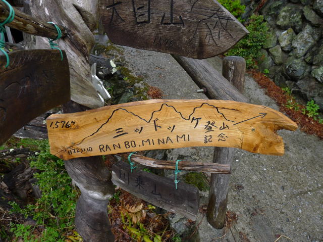 温かい食事を取ってから、いざ、雨の長沢背稜を歩きます。いつものことですが、ゴアテックスの雨衣の袖口から雨が毛細管現象で上がってきて着衣を濡らします。ミゾレ交じりの雨の中では致命的な欠陥ですが、仕方ありません。取りあえず一杯水避難尾小屋まで行き着こうと、黙々と歩きます。木々に遮られて強い風雨が直接体を打つわけではありませんが、轟々という音がします。ニリンソウだと思っていた芽生えがヤマトリカブトだと分かった場所まで来ると、避難小屋はもうすぐです。