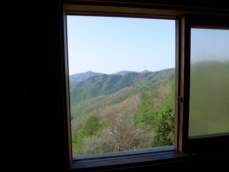 酉谷山避難小屋の夜明けは、鶯のひっきりなしのさえずりであけました。小屋の外の温度計は15℃を指していて風はまったくありません。小屋の窓を開けて新緑の尾根を眺めながら朝食を摂ります。同宿の方が出立したので小屋の掃除を始めます。この小屋のいいとこの一つは、ほとんどゴミが捨てられていないことと、トイレが綺麗に使われていることです。それでも、いつも誰もが掃除できるだけの十分な時間があるわけでもありません。たまにこうすることもいいでしょう。掃除が終わったら一服します。誰もいない静かな小屋の窓から見る風景はあまりにものどかで、ぜいたくで平和なひとときです。そうは言っても今日は長丁場になるのでそろそろ出発しないと・・・。目が覚めてからもう4時間以上も経ってしまっています。