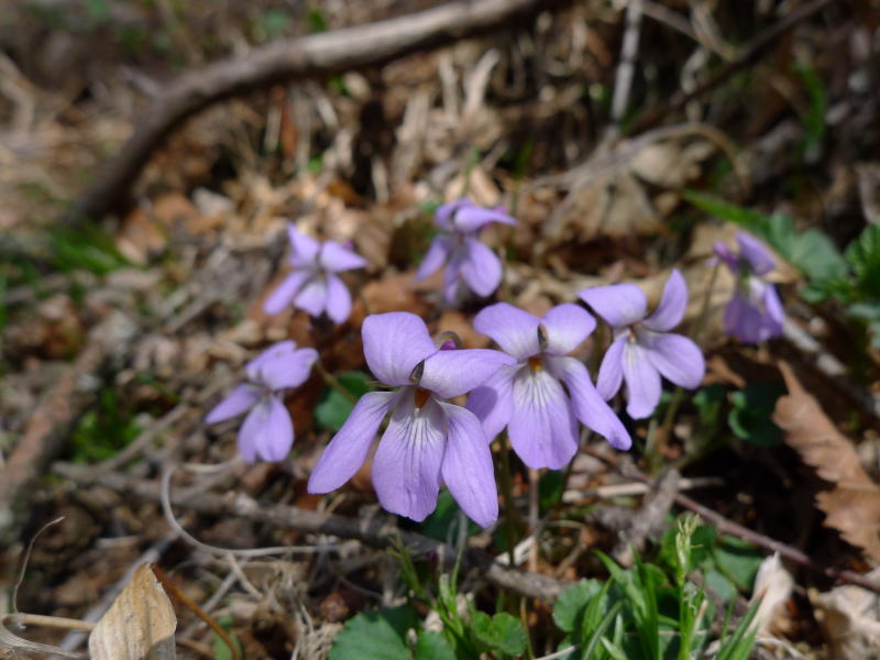 長沢背稜では花を期待するのは無理な話なので、明るい場所に生えているスミレでもカメラに収めることにします。ただ、この先、桂谷ノ頭のアズマシャクナゲはもうそろそろ花を開かせてもいいころだと思って先に進みますが、まだ蕾です。開花にはあと1週間は待たなくてはならないといった様子でした。