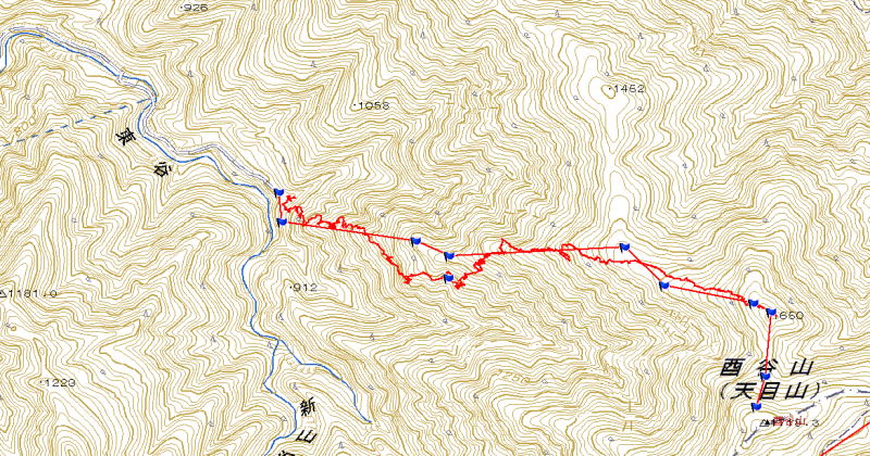 実際の道は尾根筋を大きく離れているところもあります。