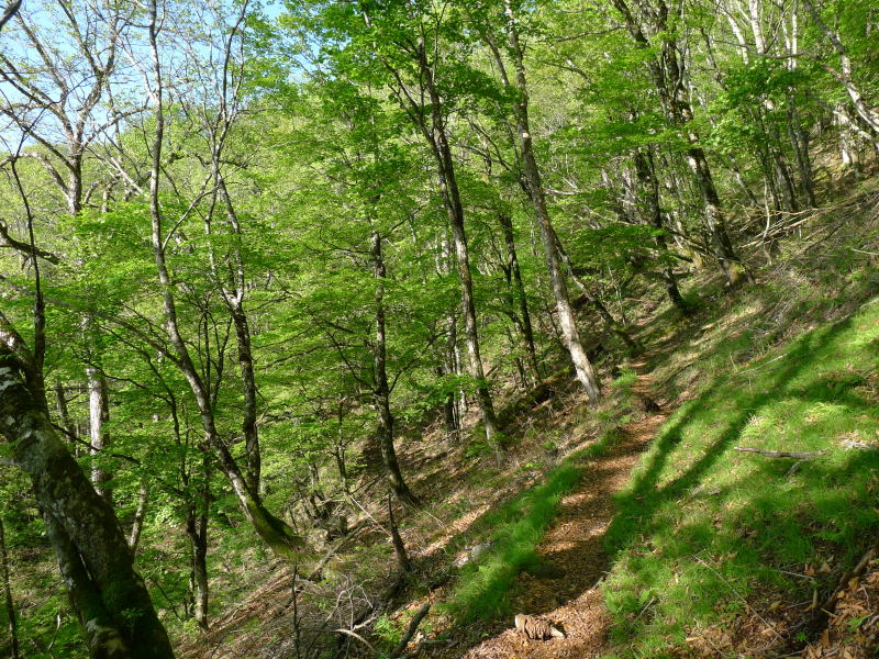 長沢背稜はようやく木々が葉を広げたばかりなので、柔らかい雰囲気に包まれています。昨日の記録を見ると1日を通して休憩時間は30分ほどしか取っていません。それでもデジカメで花を写しているときに休憩が取れているから帳尻があっているのかもしれません。今日も下山までに取った休憩時間は20分ほどでしたが、昨日同様写真を撮っている時間は結構あったはずです。