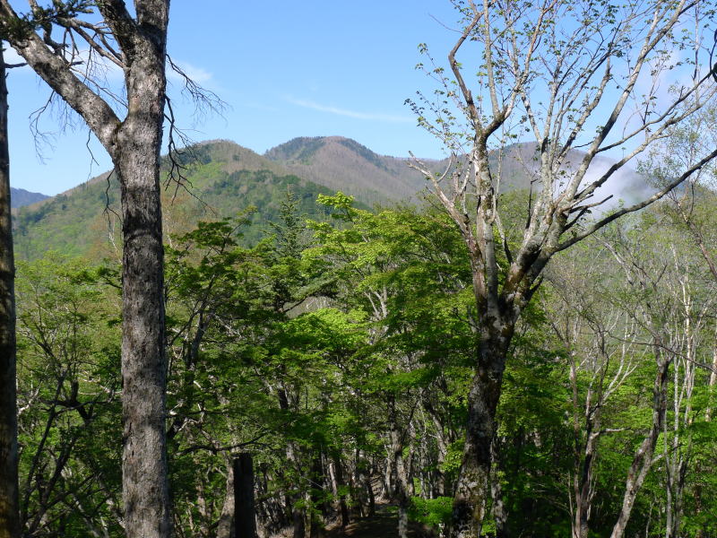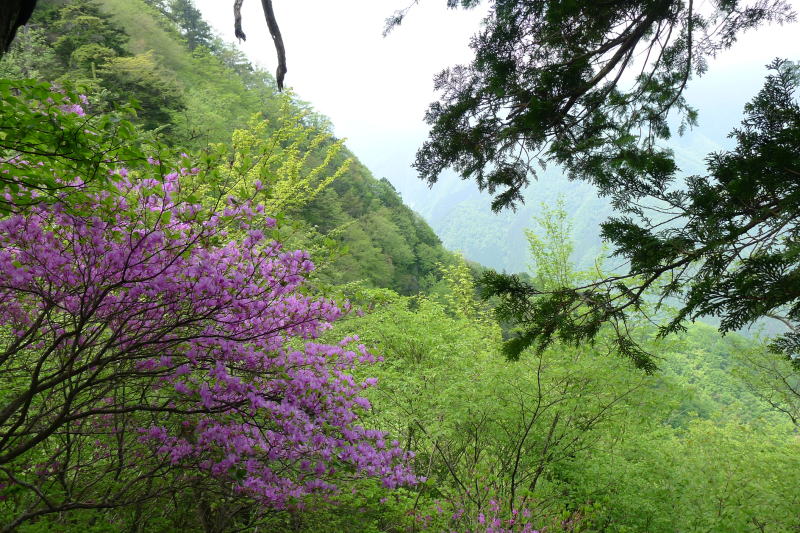 単独氏は雲取山をめざします。今日は新緑にツツジにアズマシャクナゲと楽しみが満載ですが、三峰神社まで約8時間を予定していますので、いつものようにのんびりとしているわけにはいきません。朝のきりりとした空気の中、長沢背稜を歩きます。3時間も歩くと、雲取山荘に泊まったという2〜3のグループに出合います。「アズマシャクナゲが最高でした。」とは、はつらつとした女性3人グループでした。