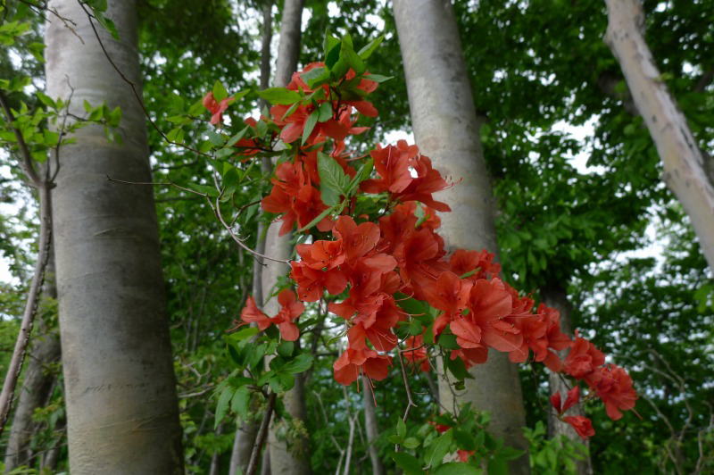 牛首あたりはシャクナゲもツツジもありで、なかなかの雰囲気です。赤岩ノ頭から立橋山の間でイワカガミを一株見つけたのですが、牛首では2株あり、2日間で見かけたイワカガミはこれだけでした。それにしても運が良かったというほかありません。