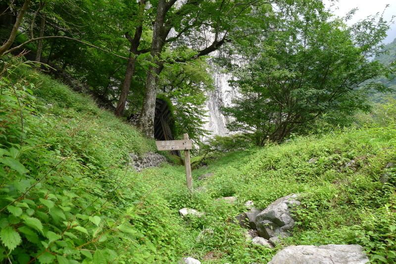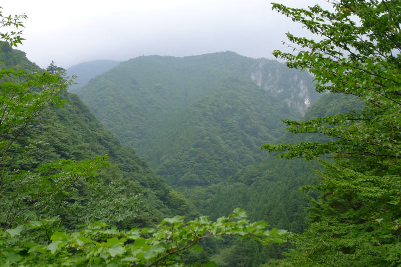 東日原から2kmほど歩くと日原鍾乳洞に着きます。大震災の影響で燕岩に崩落か所があり、小川谷林道は鍾乳洞の先で通行止めとなっています。タワ尾根に登るには、今はオロセ尾根からか一石神社から取付くしかありません。今回は一石神社から登ります。しかしこのルートは、のっけから大急登となっていて、それに加え前線に流れ込む湿った暖かい空気が相乗して激しく汗が流れます。今日は出発が遅かったことと変則的なルートを取りますので、休んでいる暇はあまりありません。苦しみながらもただ前進あるのみです。