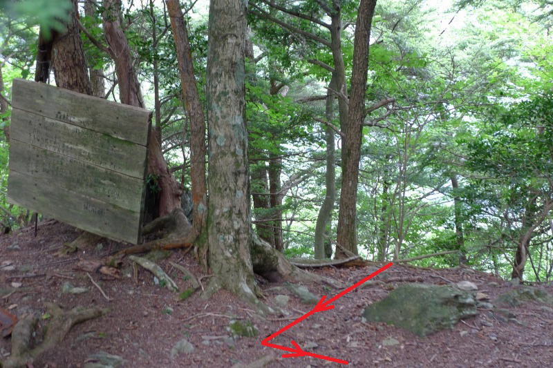 神社の社務所脇から登り(途中省略)この看板に出れば正しいルートです。