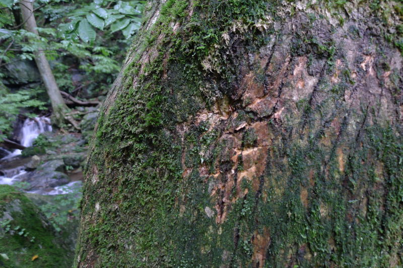 巨樹にツキノワグマが登った時にできた爪痕が上の方まで続いていましたが熊はいませんでした