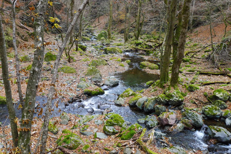 11月4度目の長沢背稜へと向かいます。今回は一石神社からタワ尾根を登り、金袋山手前の水源巡視道を下りて上段歩道を歩き、三又から酉谷山避難小屋目のコースを歩きます。時間的には7〜8時間になるでしょう。上段歩道を歩くのはこれで3回目です。2011年3月の大震災以降歩く人も稀と思われるので、どの程度コースが荒廃しているのか気がかりです。上段歩道は途中から自然林となり、新緑のころには素晴らしい雰囲気になるところで、大好きなコースです。過去2回とも人に会うこともなく静かなのがうれしいところです。