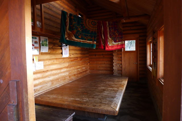 天気予報どおり南西方向から黒い雲が押し寄せ、小雪が舞い散り、小屋の周りの木々が音を立てています。それでも時間が経つにつれて風も弱くなってきて陽の光も射すようになってきました。小屋はトイレもとてもきれいに使われています。この小屋を利用する人はトイレも綺麗に掃除をして帰っていっているようですが、それでも「垂れ」「漏れ」を残していくのがあるのは致し方ありません。ということでトイレも懇ろにやります。小屋ノートの今年の分は、心無い人に破られてしまいましたが、それでも11月後半再開分からの記載を見ると、これまでのとおり小屋がきれいに使われていること、心遣いへの感謝の言葉が添えられています。