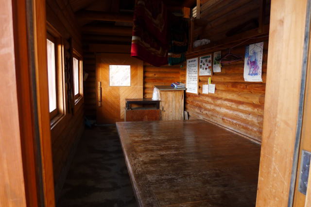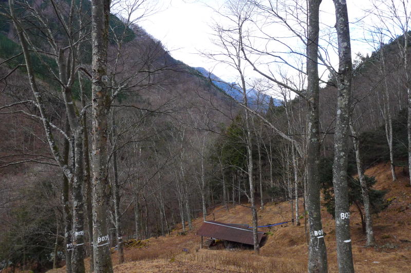 小屋ノートの記載と言えば、12/9に宿泊した人は「東日原を9時30分に出て小川谷を歩いてきたが、落ち葉で登山道が分からず3か所で迷い、小屋到着が16時になってしまった。」と書いています。このルートは小川谷林道が通行禁止ということで入り込む人も僅少で、落ち葉の堆積に加え踏み跡もボケてきています。沢が分かれたとき、尾根を意表を突かれるように乗越すときなど、以前の風景が頭の中に残っていないと首をかしげるところがないわけでもありません。また、この1か月のノートによれば、最大宿泊人数は9人、小屋外の最低温度−10℃、小屋内の最低温度0℃となっています。「小屋に備えられたホッカイロなどを使った挙句、ごみを散らかしたまま。」なんていう記載も。それでもこの小屋に到着するたびに、「次に来る人にきれいな小屋を使ってもらいたい。」という「おもてなしの心」を持った人が大勢を占めていることに違いないと、ありがたく思うのです。