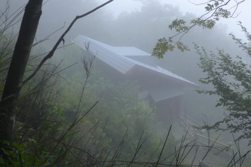 霞む酉谷山避難小屋